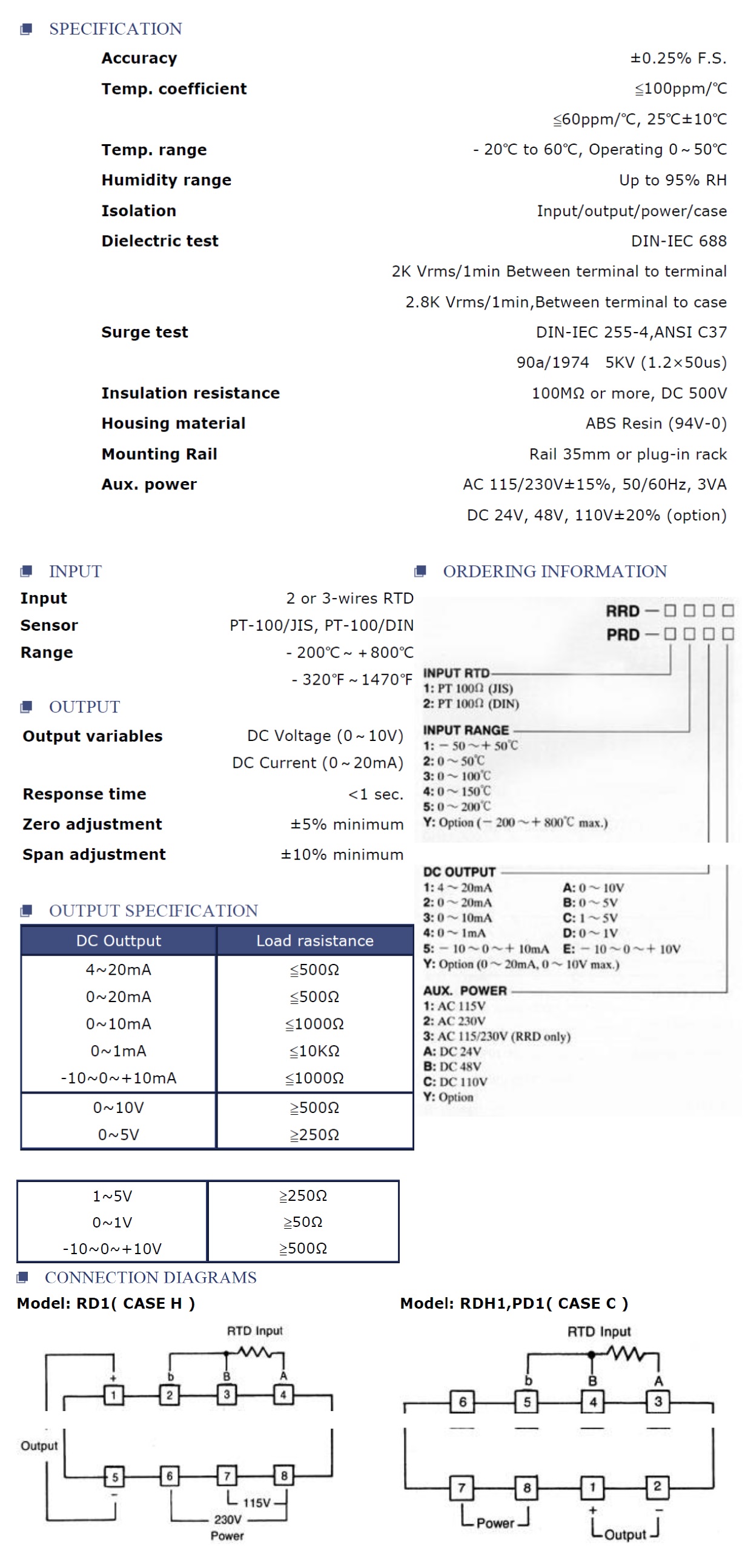 Product Name : | 溫度傳送器 RTD Temperature Transmitter - RRD, PRD |