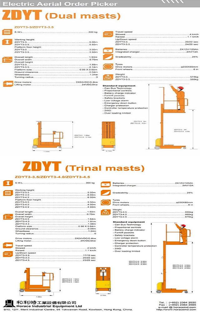Product Name : | Electric Aerial Order Picker - ZDYT (Dual masts) , & ZDYT (Trinal masts) |