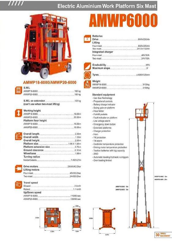 Electric Aluminium Work Platform Six Mast