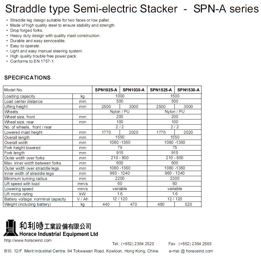 Product Name : Straddle type Semi-electric Stacker
