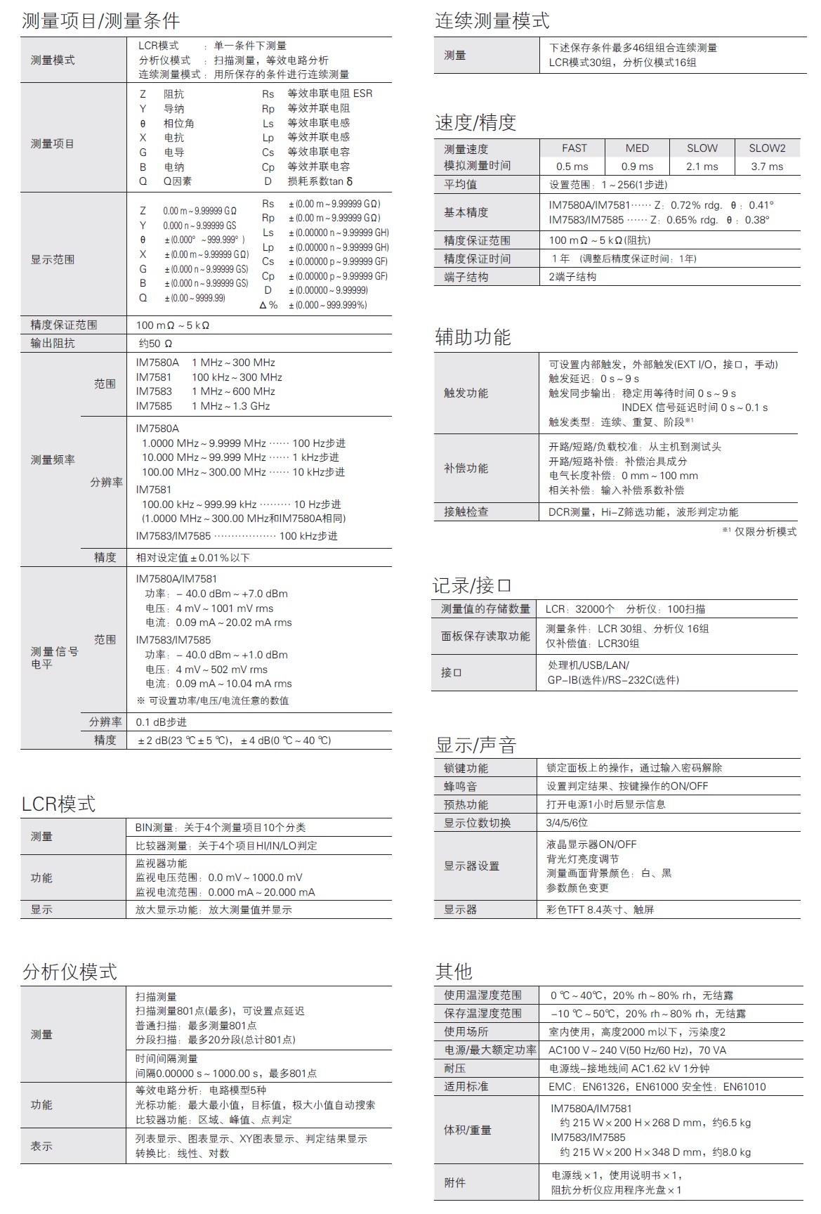 元器件测量仪器(电感、电容、电阻测量) 阻抗分析仪 IM7580A