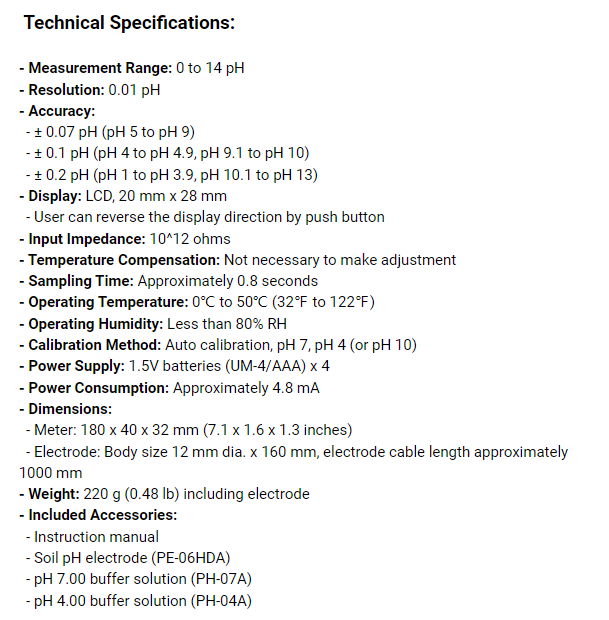 1. 完整套件:附有筆式pH計、土壤pH電極、pH 4.0及pH 7.0標準緩衝液,提供即時使用所需的一切。