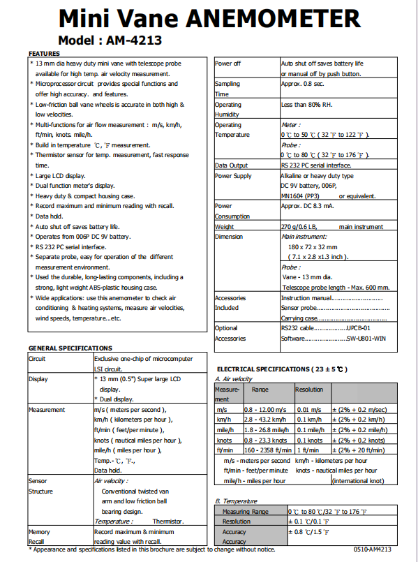 AM-4213 MINI VAN ANEMOMETER