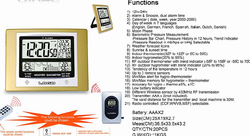 Product Name : RF multi-function wireless weather station clock