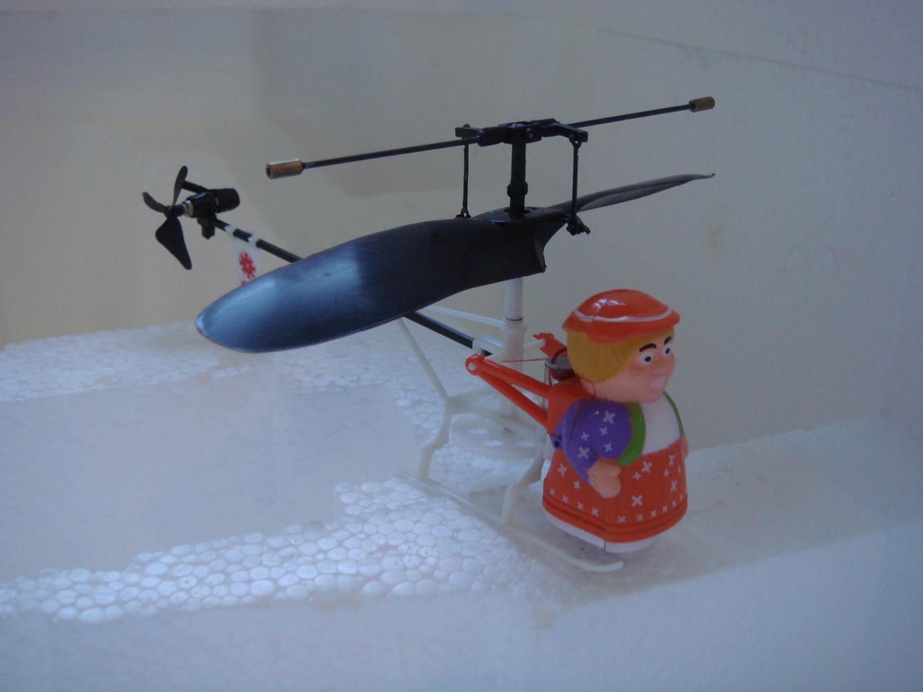 Sweet Granny Main rotor diameter is 130mm (5.25-inch) Length: 170mm (6.5-inch) excluding rotors Rear rotor diameter is 30mm (1.25-inch) Product weight: only 10g, including flight battery Rechargeable flight battery: high-capacity integral lithium-polymer battery Charger: integral transmitter/charger supplied with LED indicator/auto shut-off Simply plug-in and charge Easy to use connections Charging time: 6 to 8 minutes for full charge Flight duration: 10 minutes or more between charges Packing Size: 66*39*69 CM Certificate: CE/ROHS Batteries required: 6 x 1.5V AA alkaline batteries for transmitter/charger