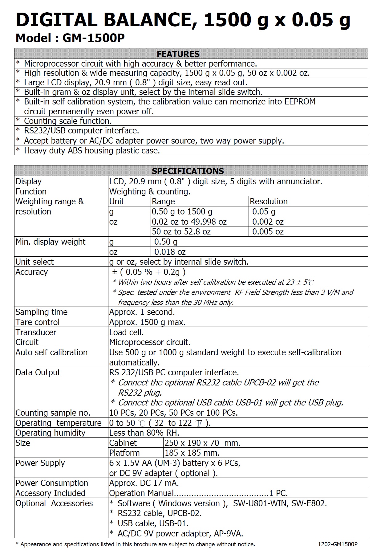 Product Name : | DIGITAL BALANCE - GM-1500P 精密型磅秤 |
