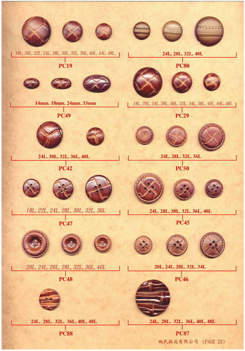 Product Name : | P 23 尼龍仿皮鈕 (Nylon immitation Buttons) |