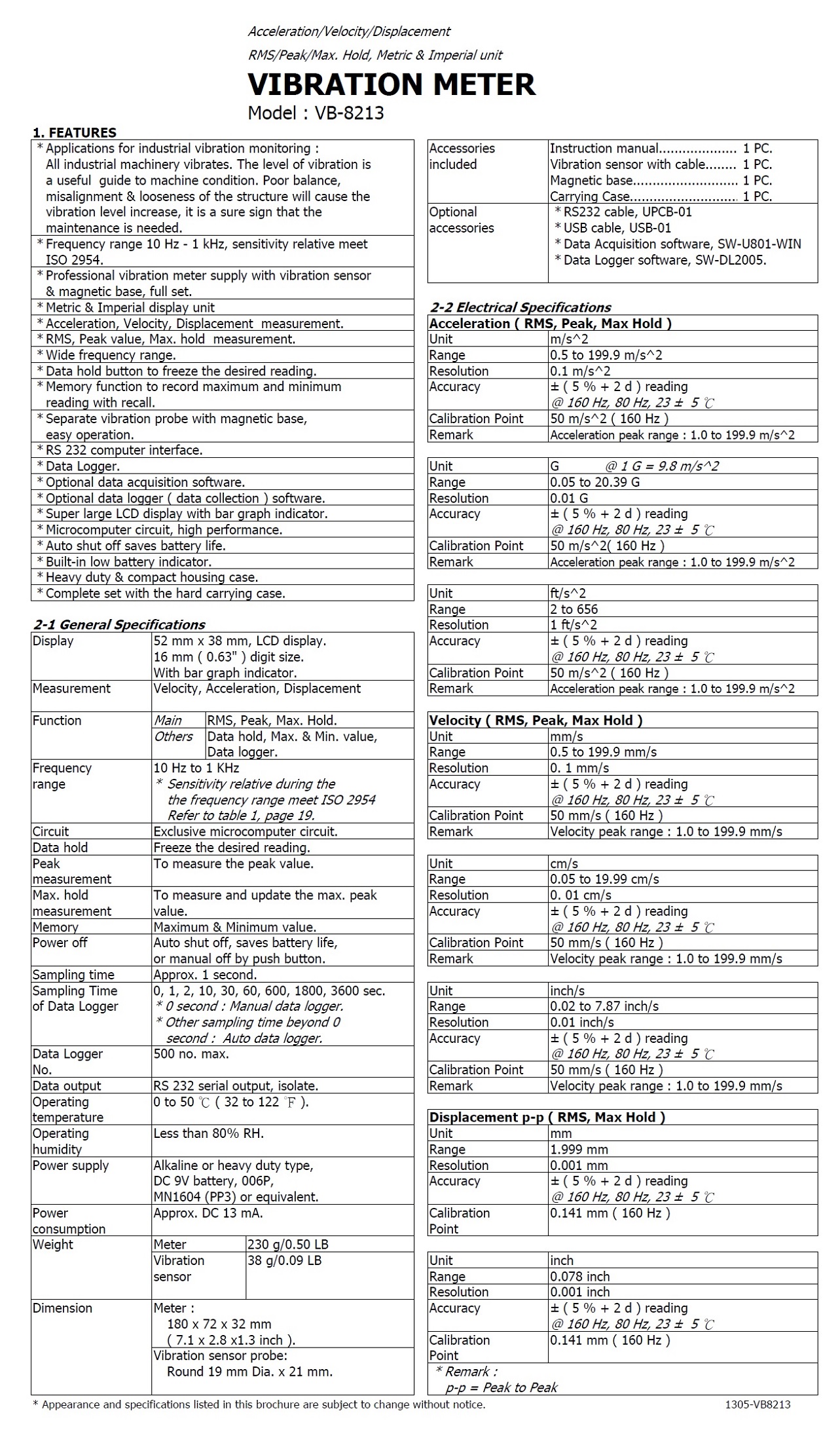 Product Name : | VIBRATION METER - VB-8213 振動計 / 振動測試儀 |