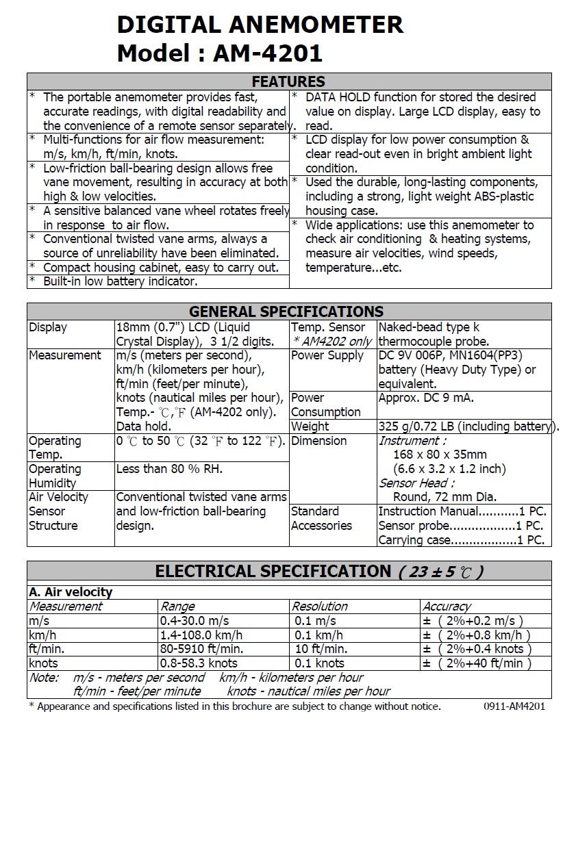 Product Name : | DIGITAL ANEMOMETER Model : AM-4201 風速計 |