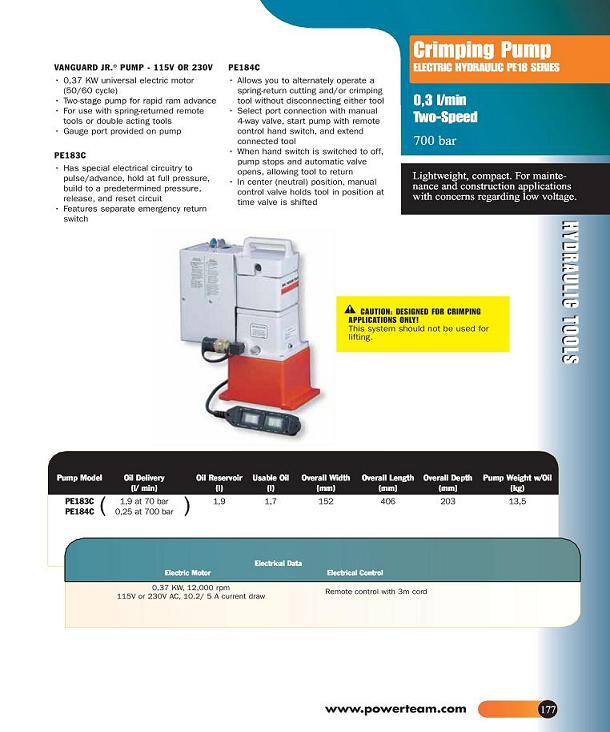 Crimping Pump - Electric Hydraulic PE 18 Series o.3 1/3 Min Two Speed