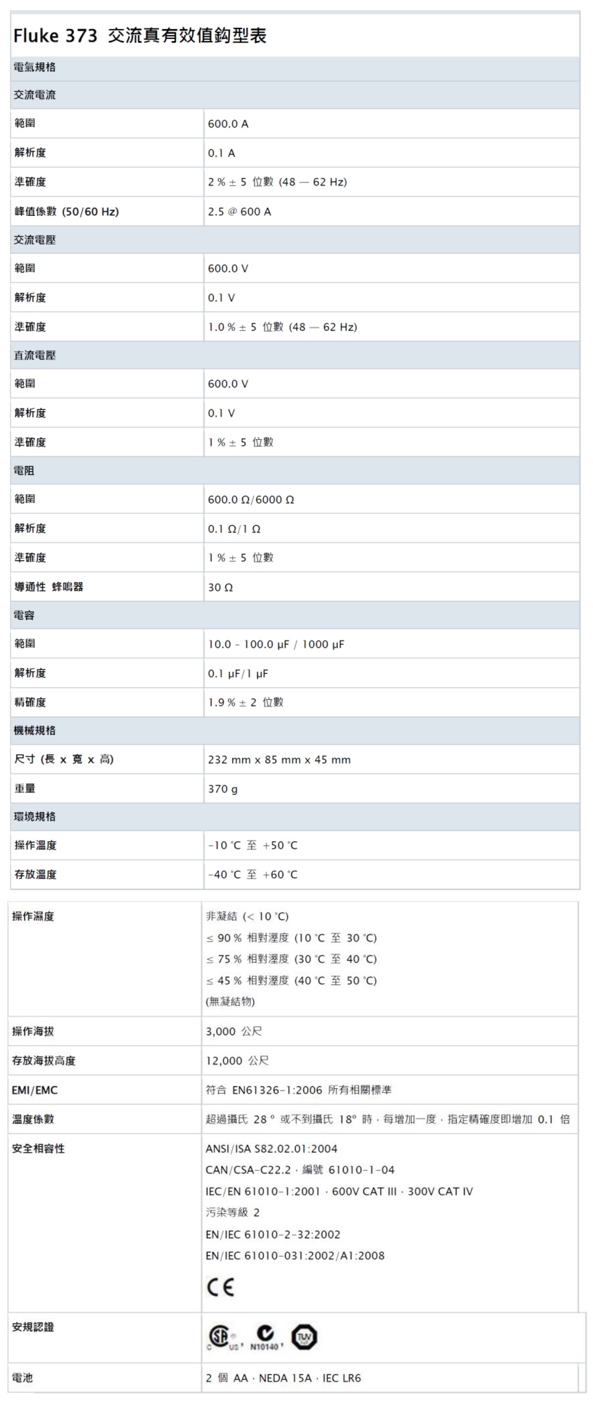 Product Name : | Fluke 373 交流真有效值鈎型表 |