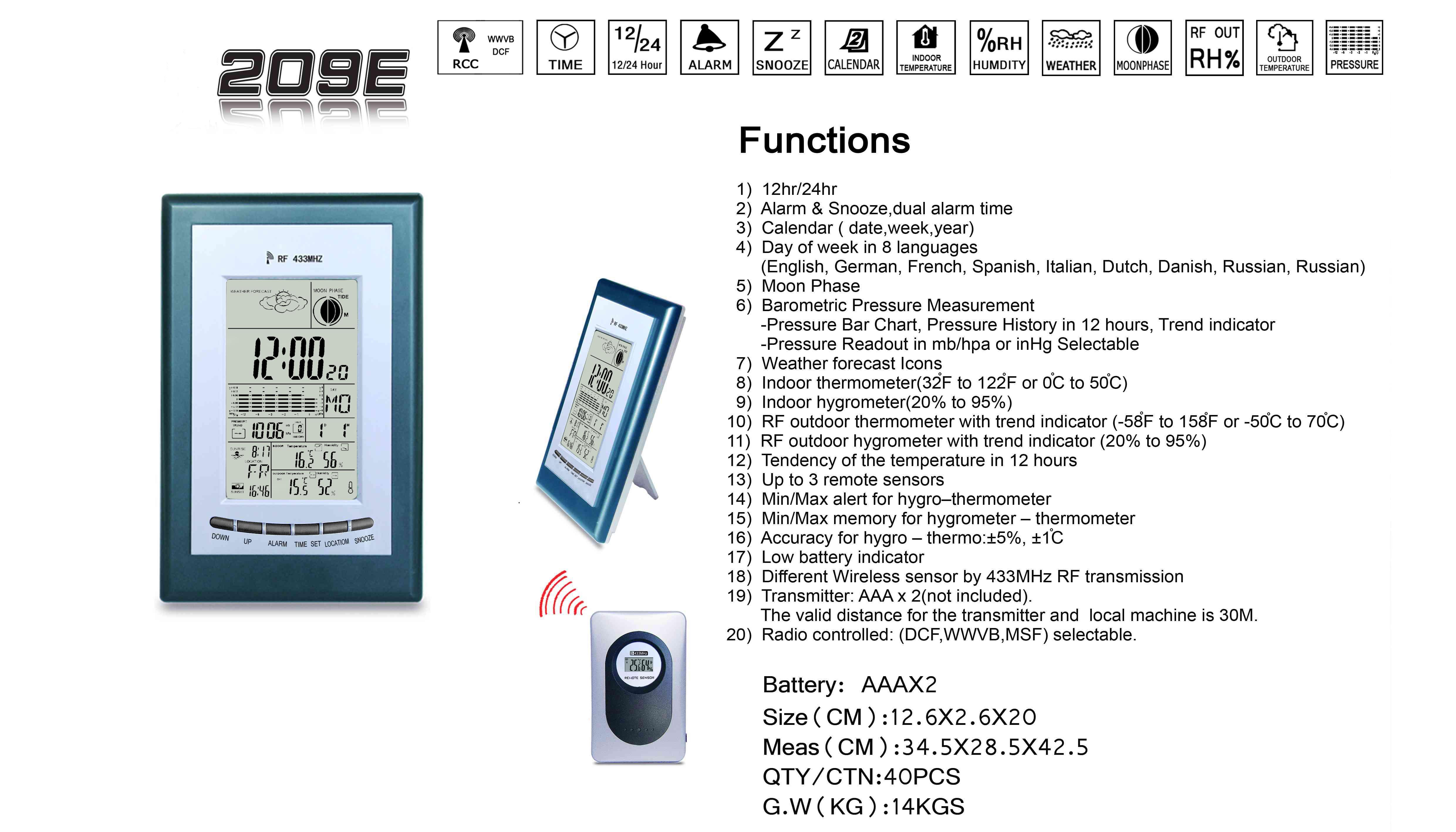 Product Name : | RF multi-function wireless weather station clock |