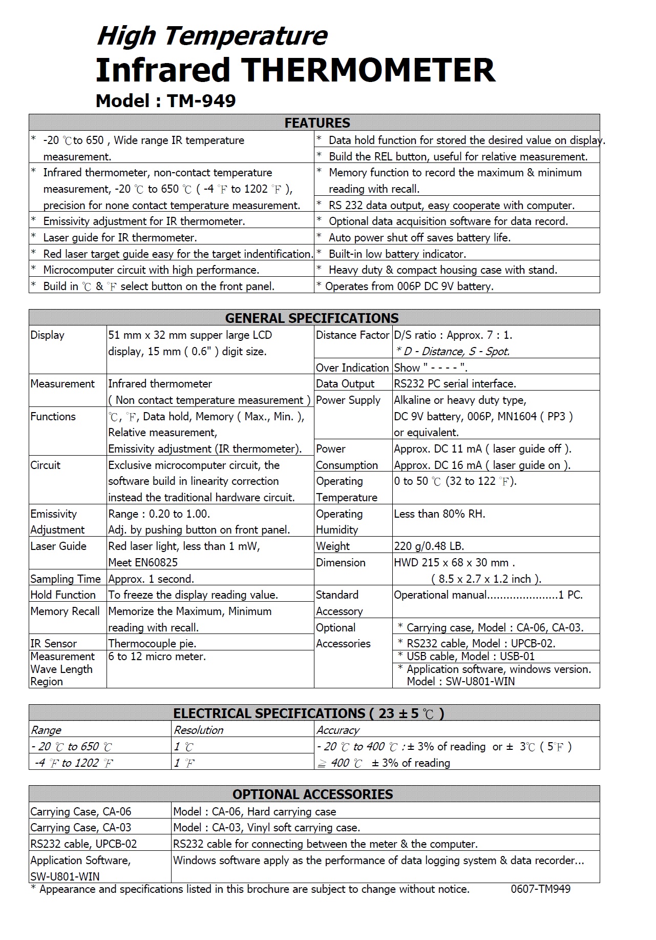 Product Name : | INFRARED THERMOMETER - TM-949 多功能紅外線溫度計 |