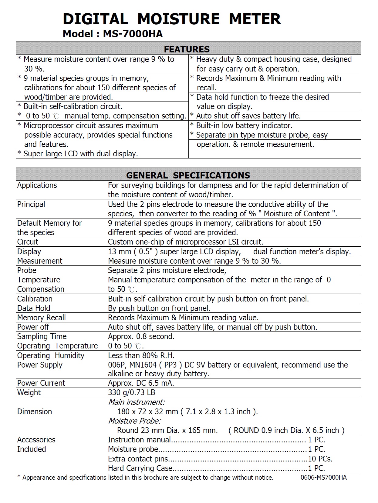 Product Name : | 木材水分計 MOISTURE METER Model : MS-7000HA |
