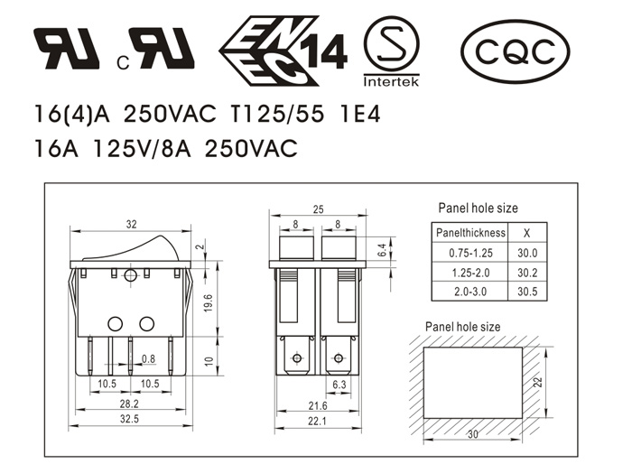 16A 125V/8A 250VAC