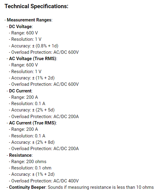 2.交直流電流:0.1A~200.0A±2%