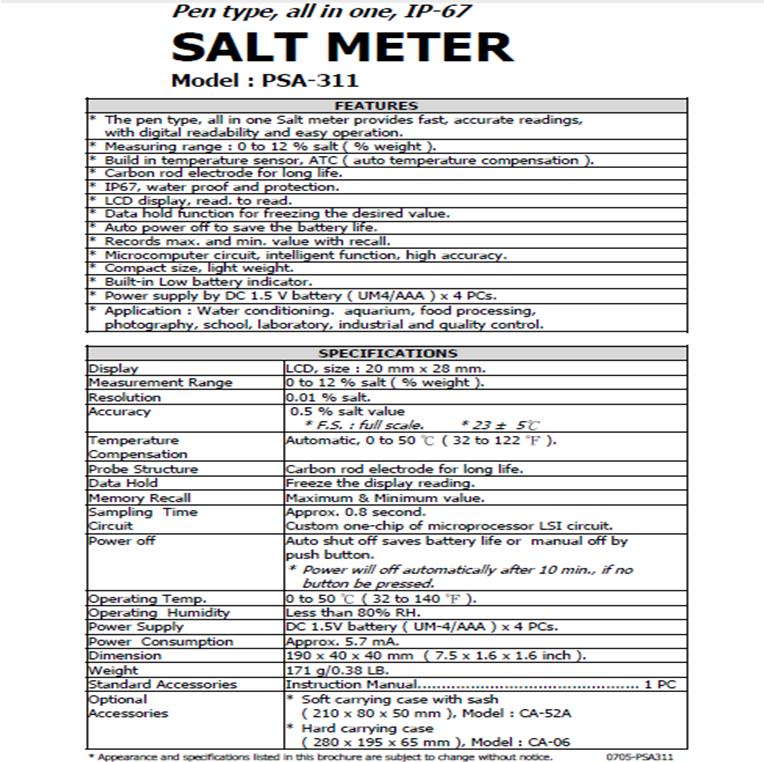 Product Name : | Pen type, all in one, IP-67 SALT METER |