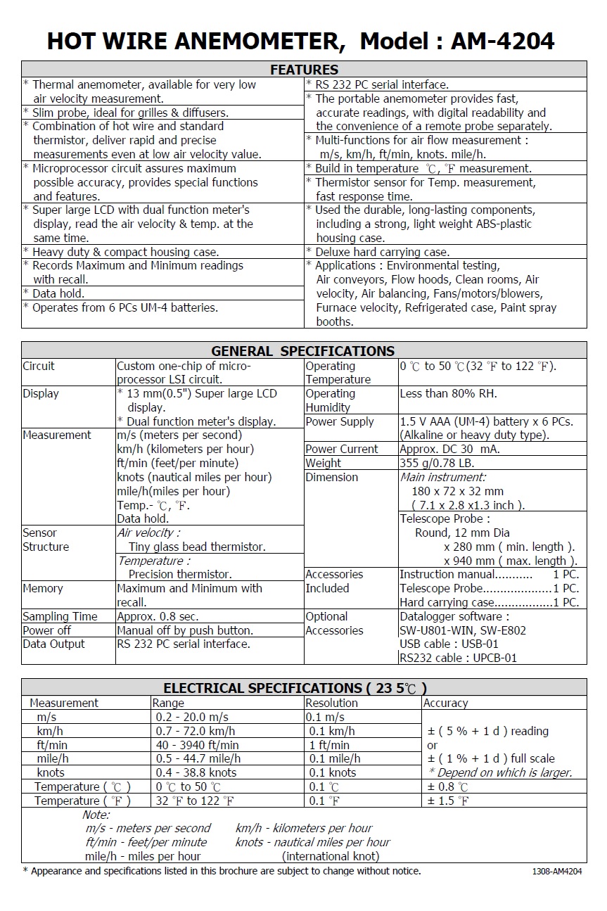 Product Name : | HOT WIRE ANEMOMETER - AM-4204HA 熱線式風速計 |