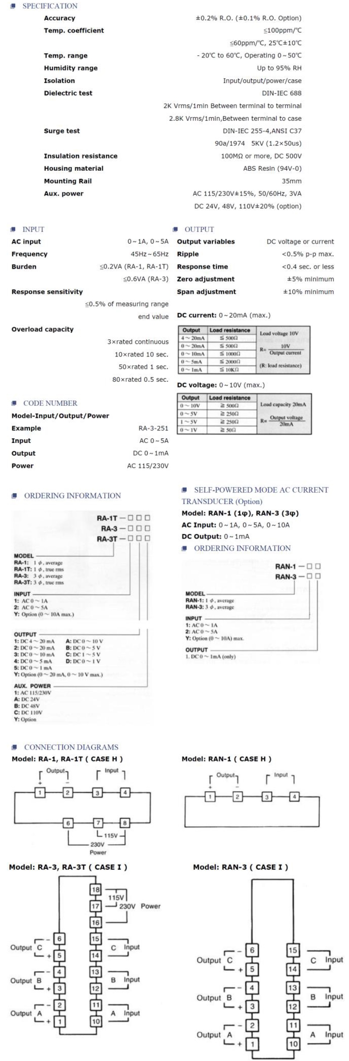 Product Name : | 交流電流轉換器 AC Current Transducer - RA, RAN |