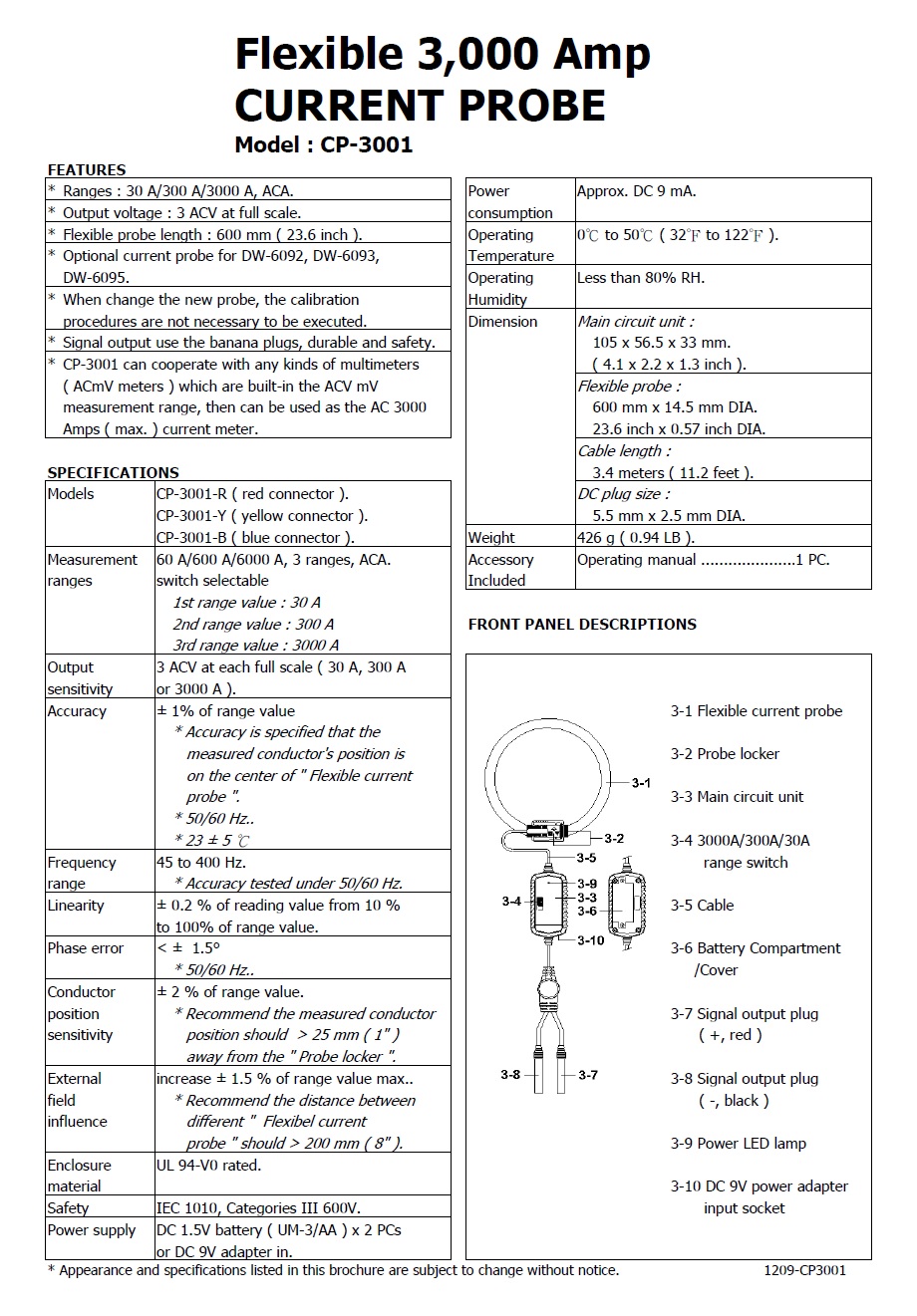 Product Name : | 3,000A FLEXIBLE CURRENT PROBE Model : CP-3001 |