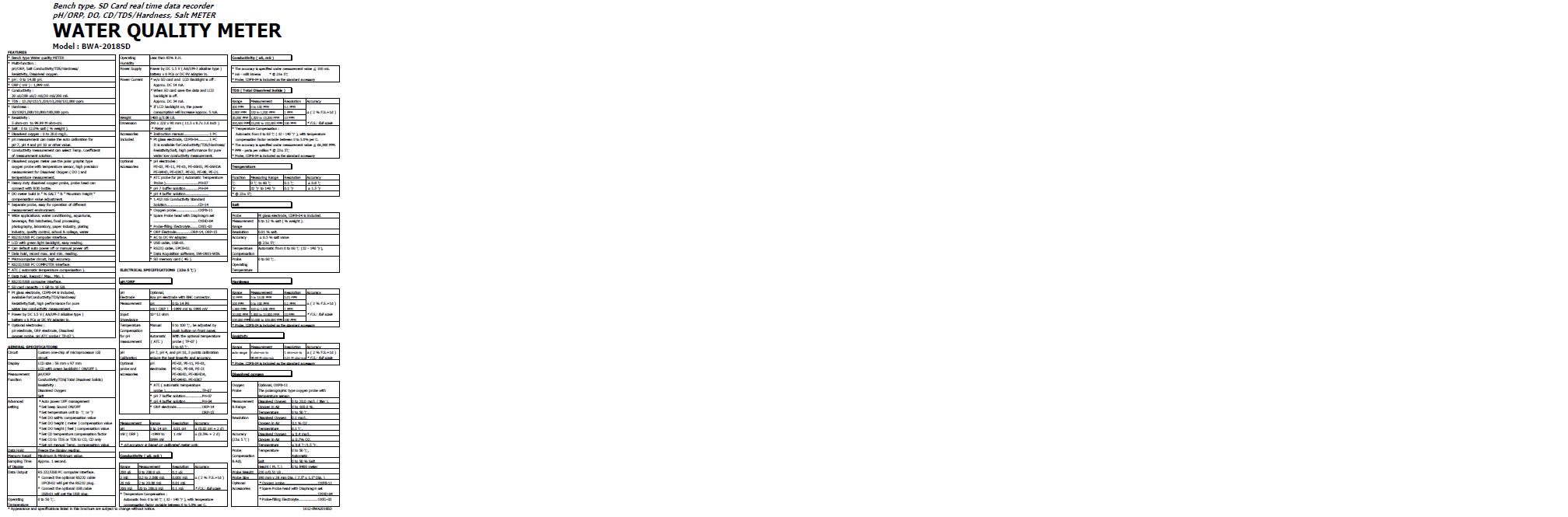 * Dissolved oxygen : 0 to 20.0 mg/L.
