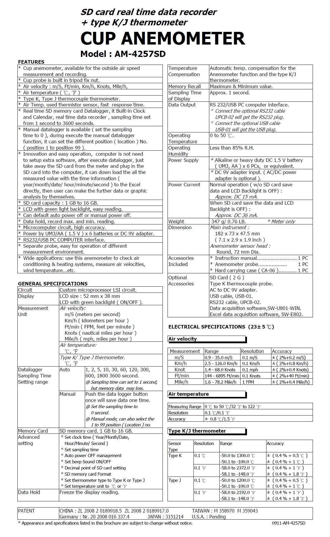 Product Name : | CUP ANEMOMETER Model : AM-4257SD 杯型記憶式溫度 / 風速計 |