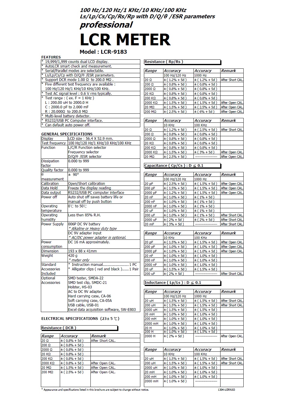 LCR METER - LCR-9183 專業型掌上型電阻/電容/電感測量儀錶