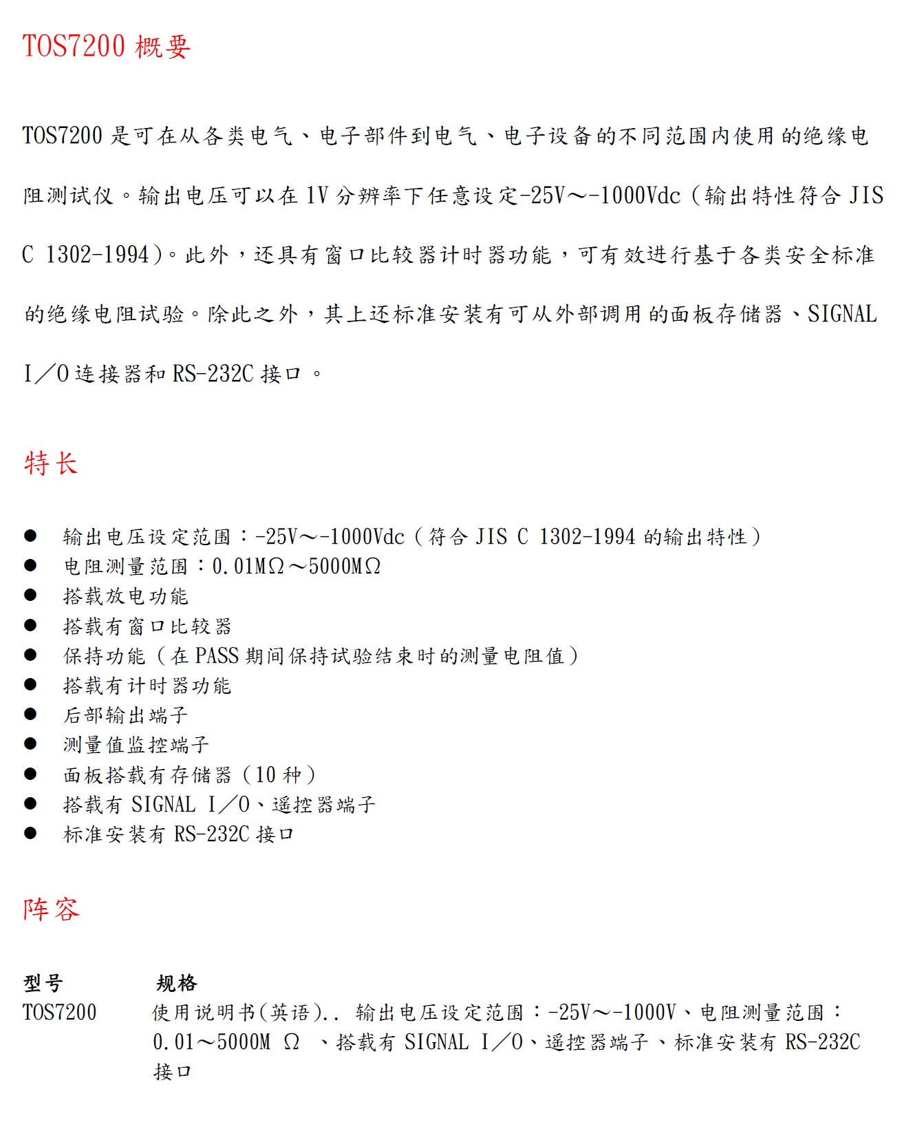 Product Name : | 绝缘電阻測試儀 - TOS7200 |