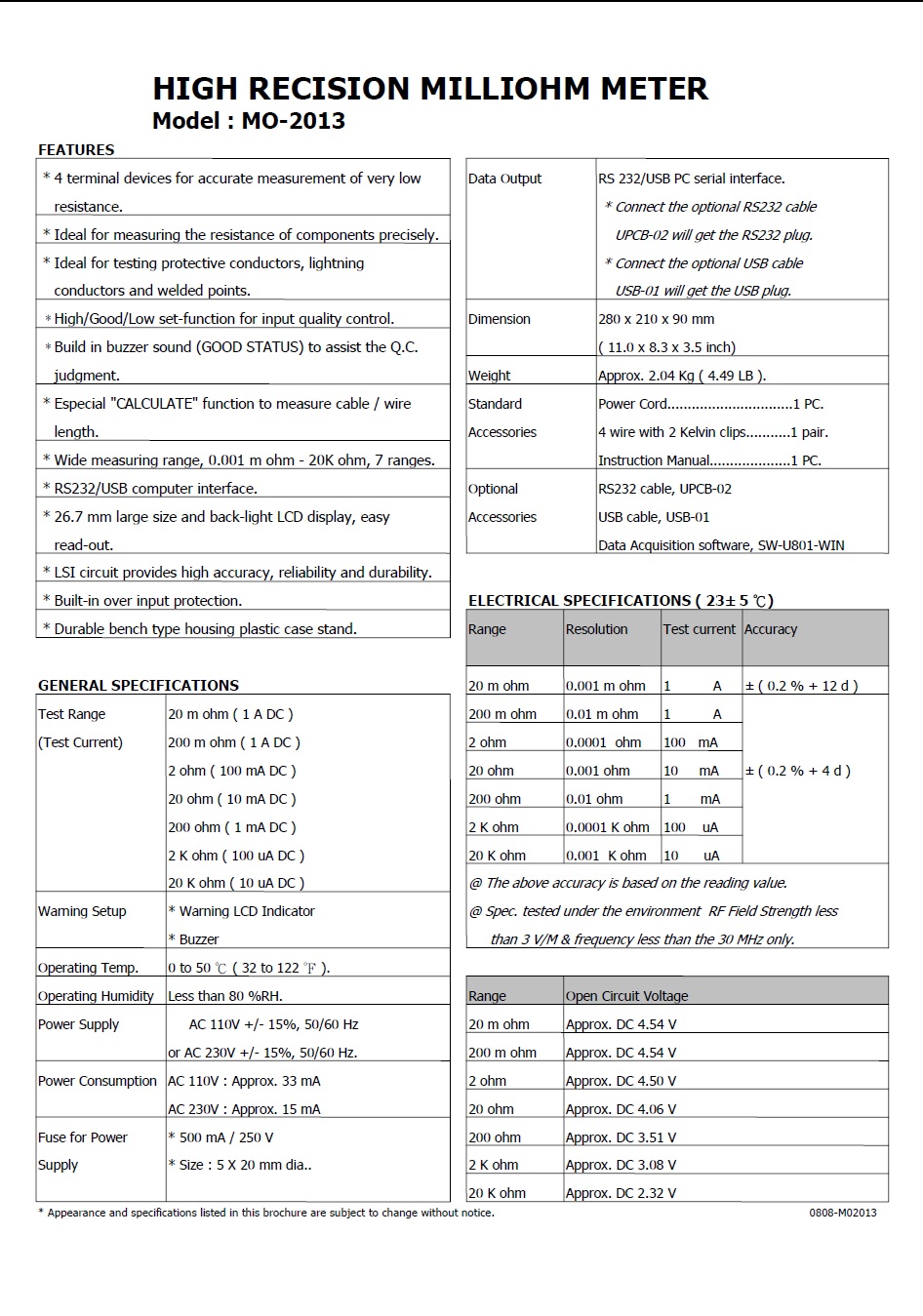 Product Name : | HIGH PRECISION MILLIOHM METER Model : MO-2013 高精度微電阻計 |