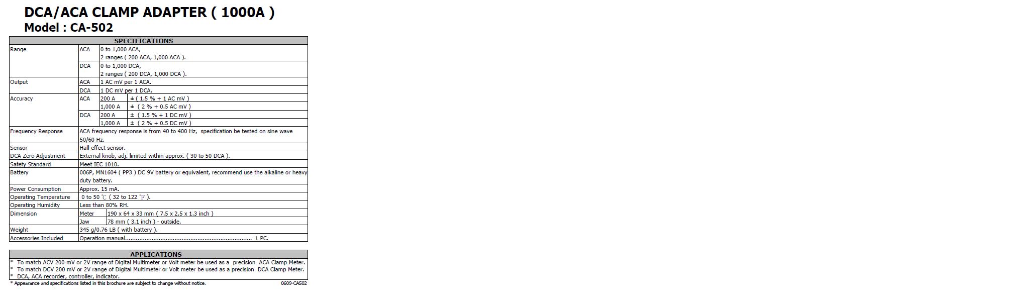 * Range : DCA, ACA, 200 A, 1000 A