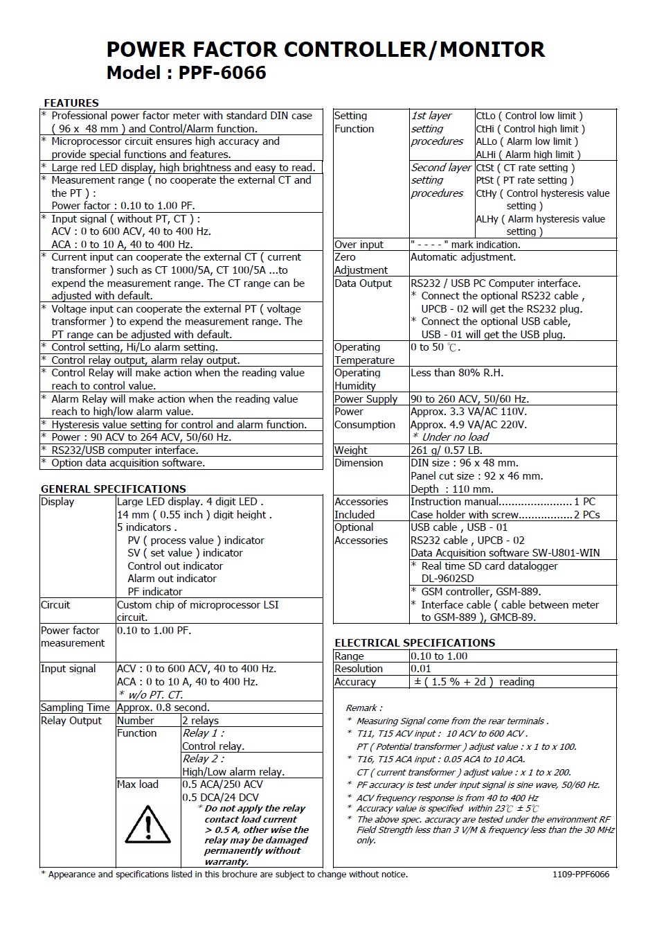 Product Name : | POWER FACTOR CONTROLLER/MONITOR Model : PPF-6066 功率因素控制顯示錶 |