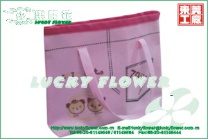 Guangzhou Lucky Flower Non-woven bag Factory produce Non-woven bag, flocking bag, shopping bag, PP bag, holding bag, gift bag, advertisement bag, etc. we have about 40 kinds of material colors , material weight from 20-200g. Our delicate works and perfect printing make bags good looking. Our daily produce capacity is 20000 pcs. Our quality is reliable. Welcome to visit our website: www.luckyflower.com.cn and visit our factory. Contactor: Rachel Mobile: 13725478228 13725104888