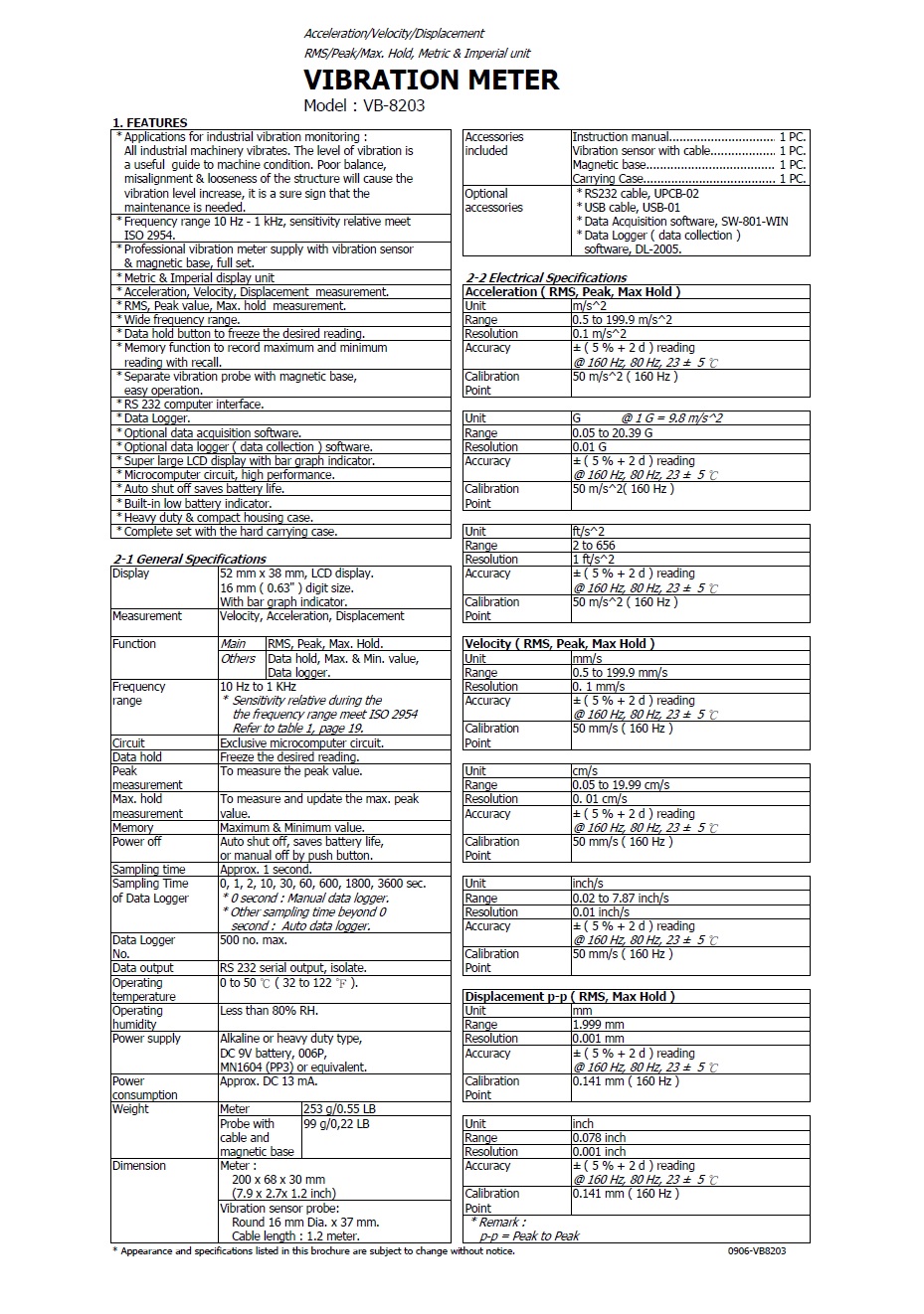 Product Name : | VIBRATION METER - VB-8203 振動測震儀 |