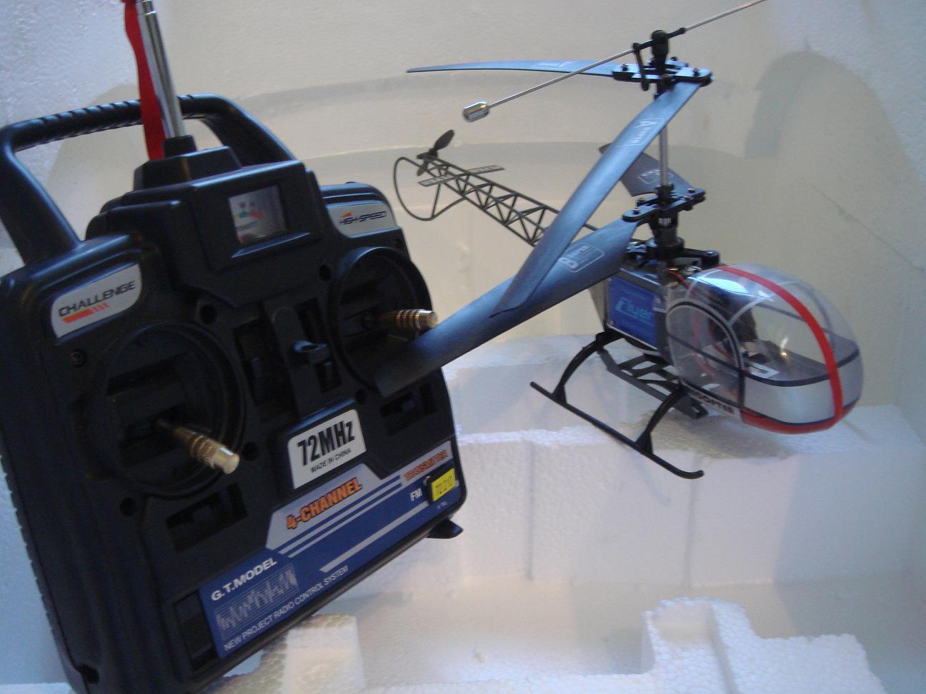 Great Micmac 4- Channel Helicopter with Lipo battery Coaxial contra-rotating main rotor Using the Ultra tough iron-fiber materials New servo and mixer system Powerful lithium battery Micro servos, receiver, Gyro and Speed controller/mixer Description: R/C Electric Powered Helicopter 4channel STABLE &EASY FLYING DOUBLE MAIN ROTOR Packing Size: 49*42*63.5 CM Certificate: CE/ROHS