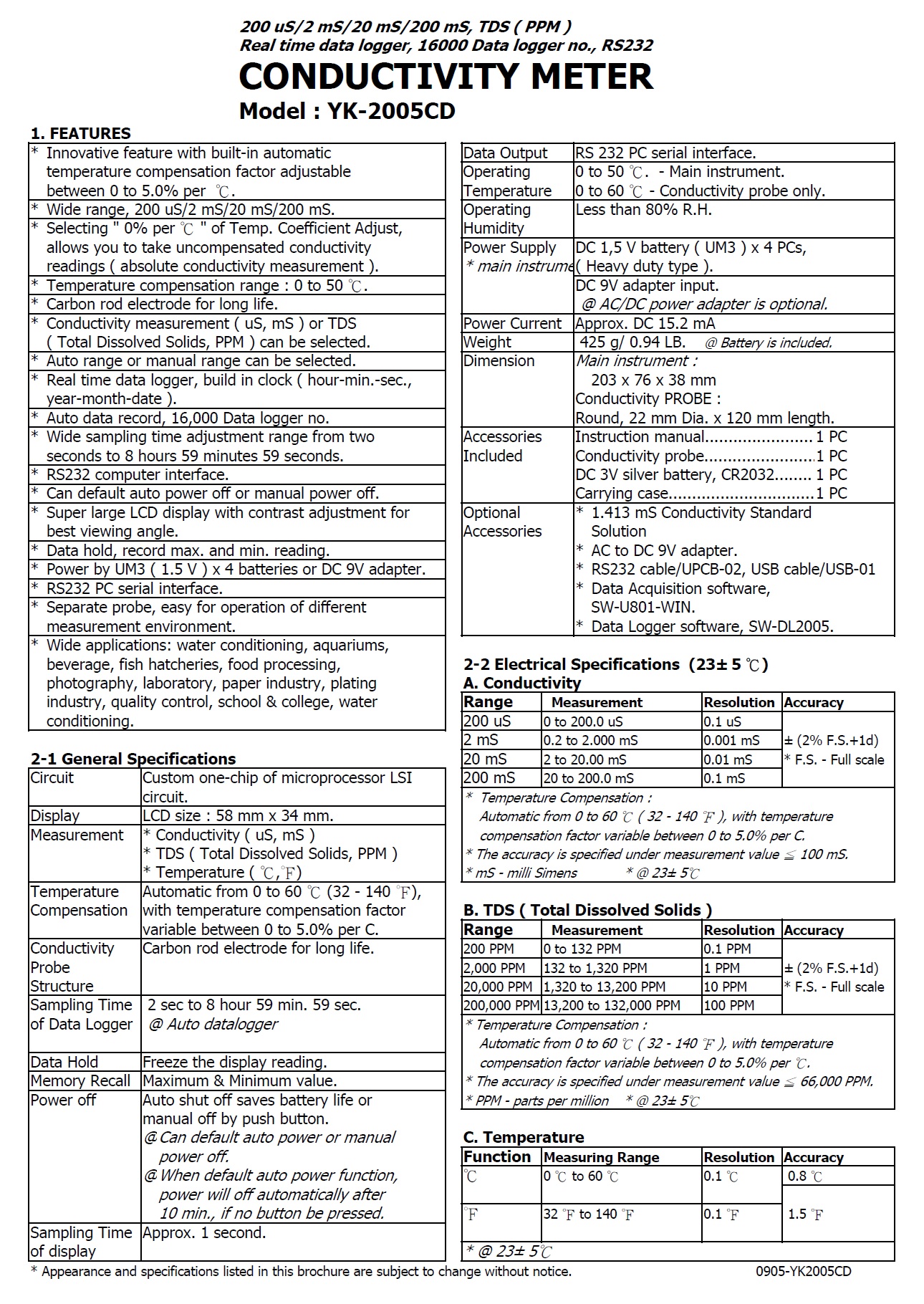 Model : YK-2005CD