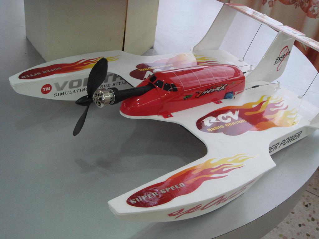 R/C Air & Sea Explorer 1) 4-channel scale model with multistage electricity volume shown on the transmitter panel. 2) suitable for flight in air, water and on land. 3) Basic and 3D actions available. 4) highly efficient brushless motor and Li-polymer power battery used. 5) mix controller for aileron and elevator. 6) Durable playing time: 25 Minutes 7) Contents: Unit, controller, charger, rechargeable battery for unit Packing Size: 76.5*52.5*54.5 CM Certificate: CE/ROHS