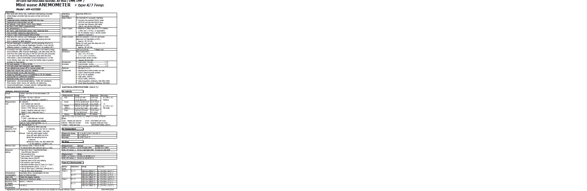 SD Card real time data recorder Air flow ( CMM. CFM ) Mini vane ANEMOMETER, + type K/J Temp.
